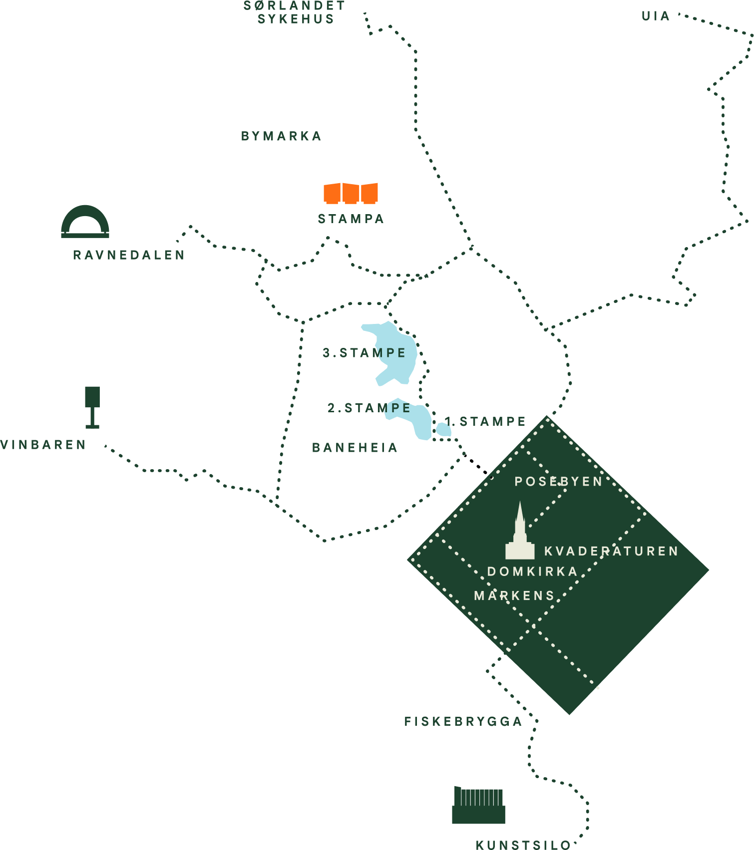 Ved Solbergveien på Eg, ved foten av bymarka, kommer det nye leiligheter fra 36 til 102 kvm. Prosjektet består av tre bygg, som har fått navnene Første, Andre og Tredje Stampe. Navnene er inspirert av nærområdet. De som kjenner byen godt, vil kjenne igjen referansen til badeplassene i Baneheia, hvor vi allerede finner Første, Andre og Tredje Stampe. Vi syntes det var en fin måte å knytte prosjektet til stedet og omgivelsene på. Første salgstrinn vil være Andre Stampe, altså det bygget som er i midten.